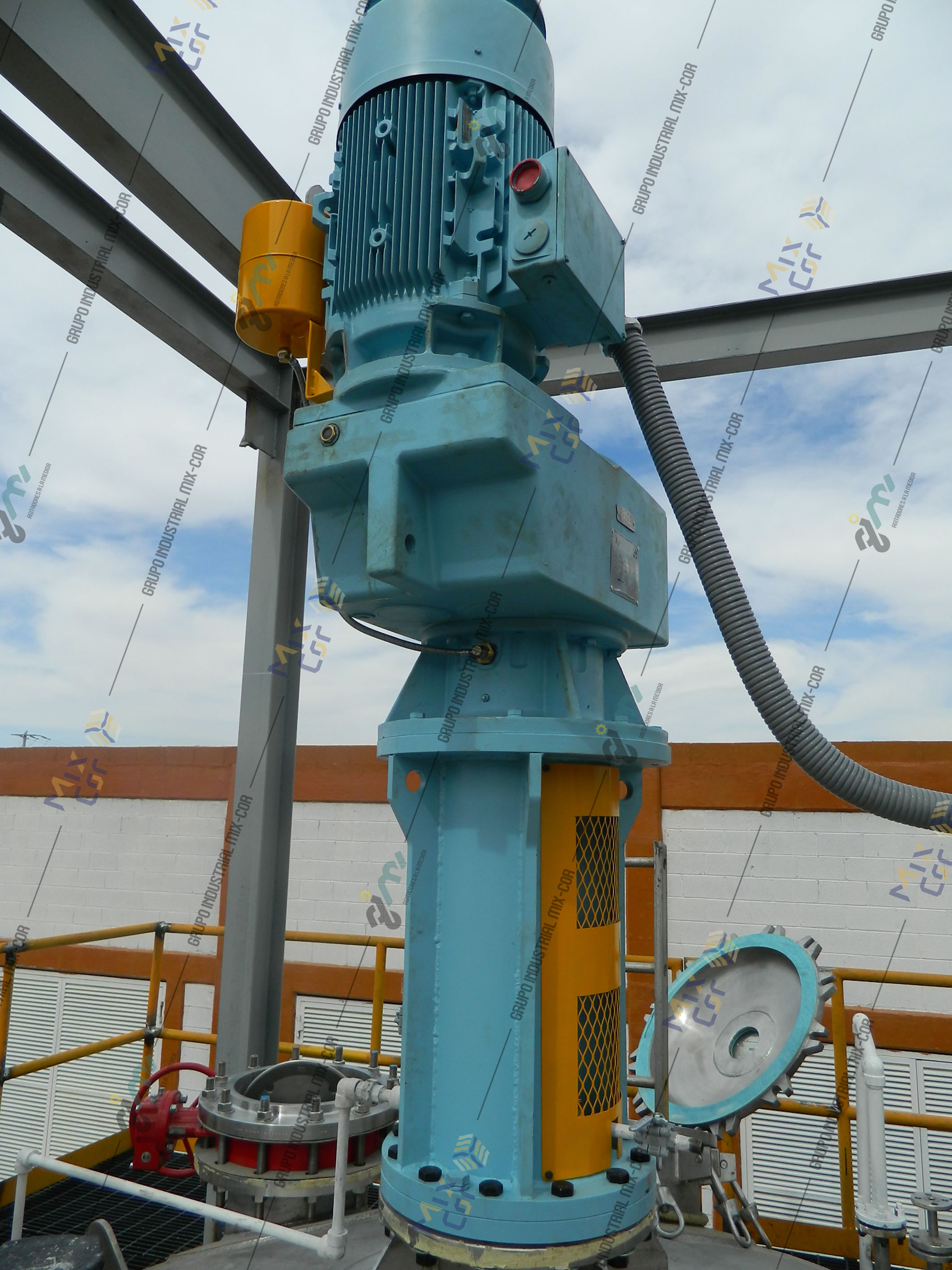 Motorreductor de montaje vertical Mix Cor con sistema de sello mecánico para reactor en donde se requiera que una agitación vigorosa para la reacción química con impulsores adecuados al proceso en la parte interna del reactor.