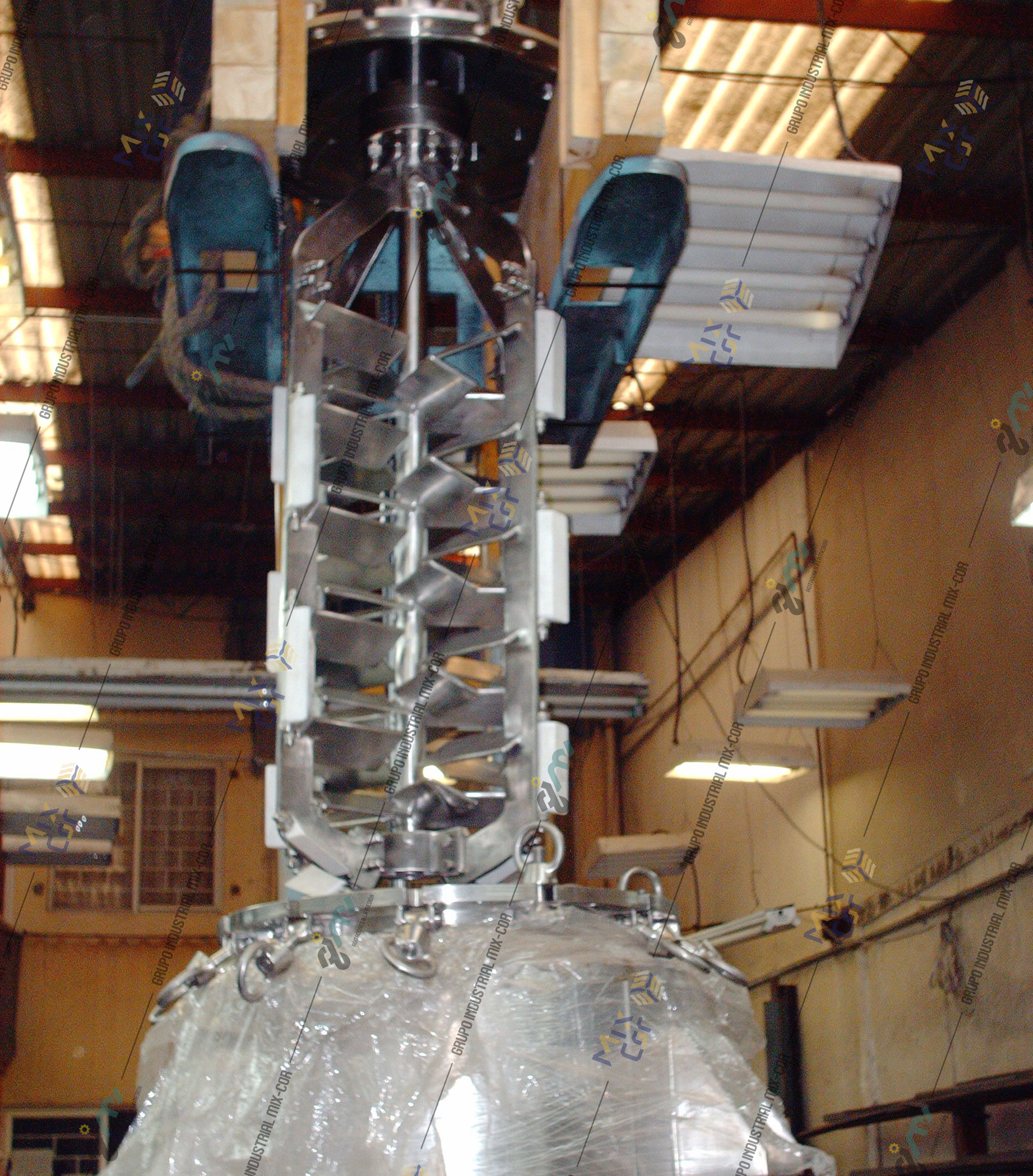 Parte agitadora para montaje vertical tipo ancla e impulsor central de corte para procesos químicos en donde se requiere que los brazos del ancla ayuden a la mezcla y limpieza en el proceso de mezcla y homogenización. Pueden ser fabricados en acero al carbon o inoxidable.