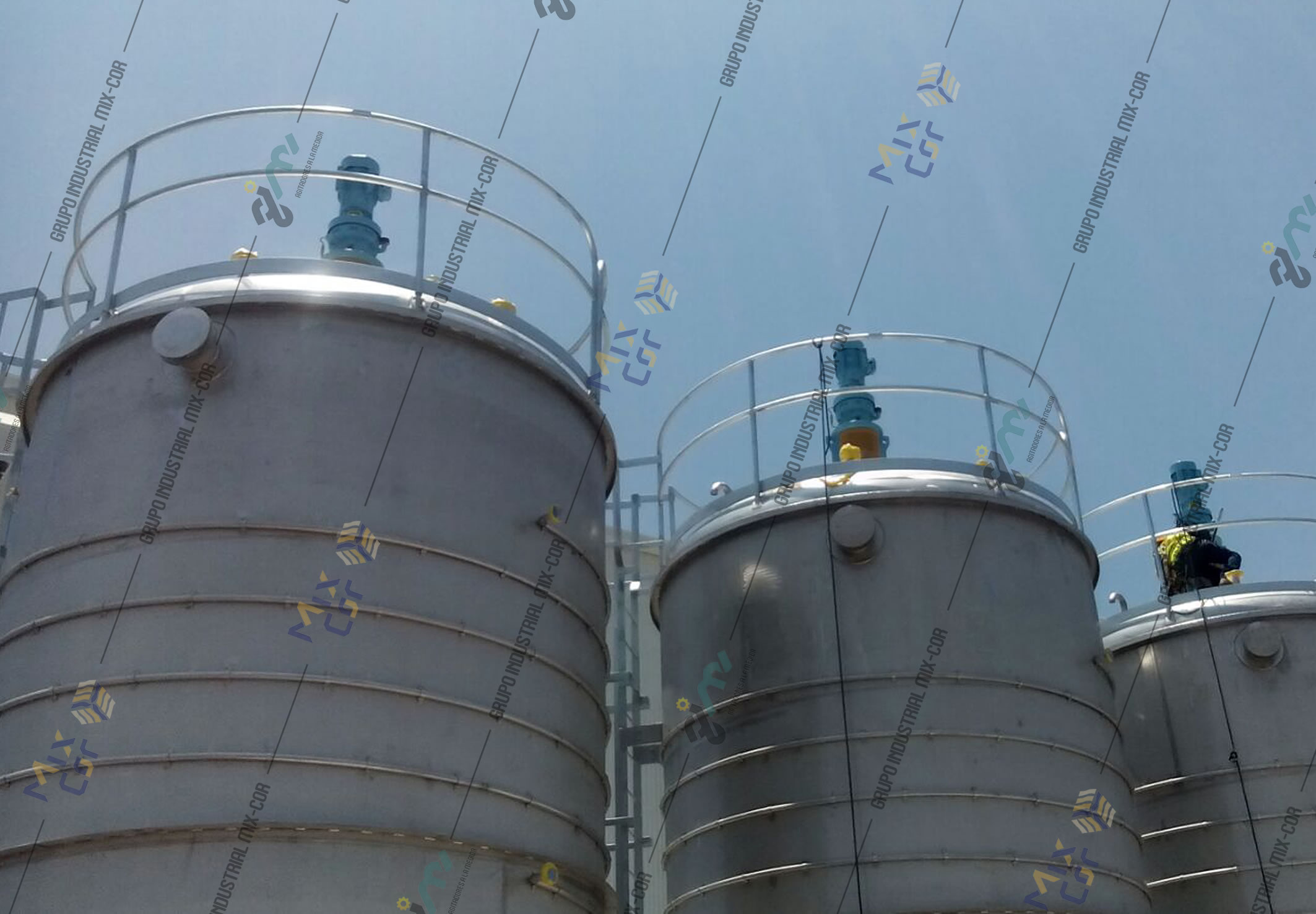 Medium sized mixing vertical mounting for the preparation of mixed paints with high efficiency impellers. For chemical plants.
