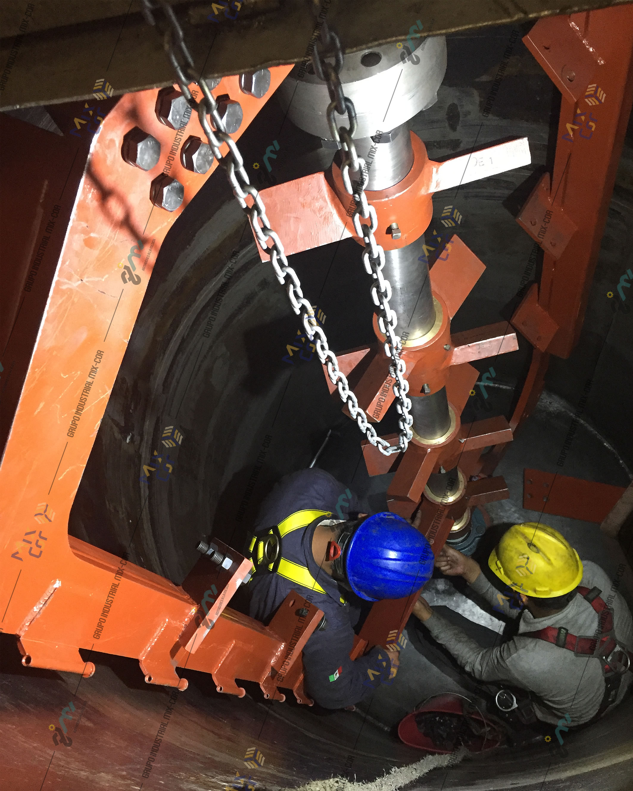 Impulsor Mix Cor de montaje vertical para el mezclado y homogenización de grasas con aditivos con impulsores de alto corte para la homogenización y mantener la temperatura del proceso homogeneos en baja velocidad. Con sistema de ancla y raspadores para la integración periférica del producto a mezclar.