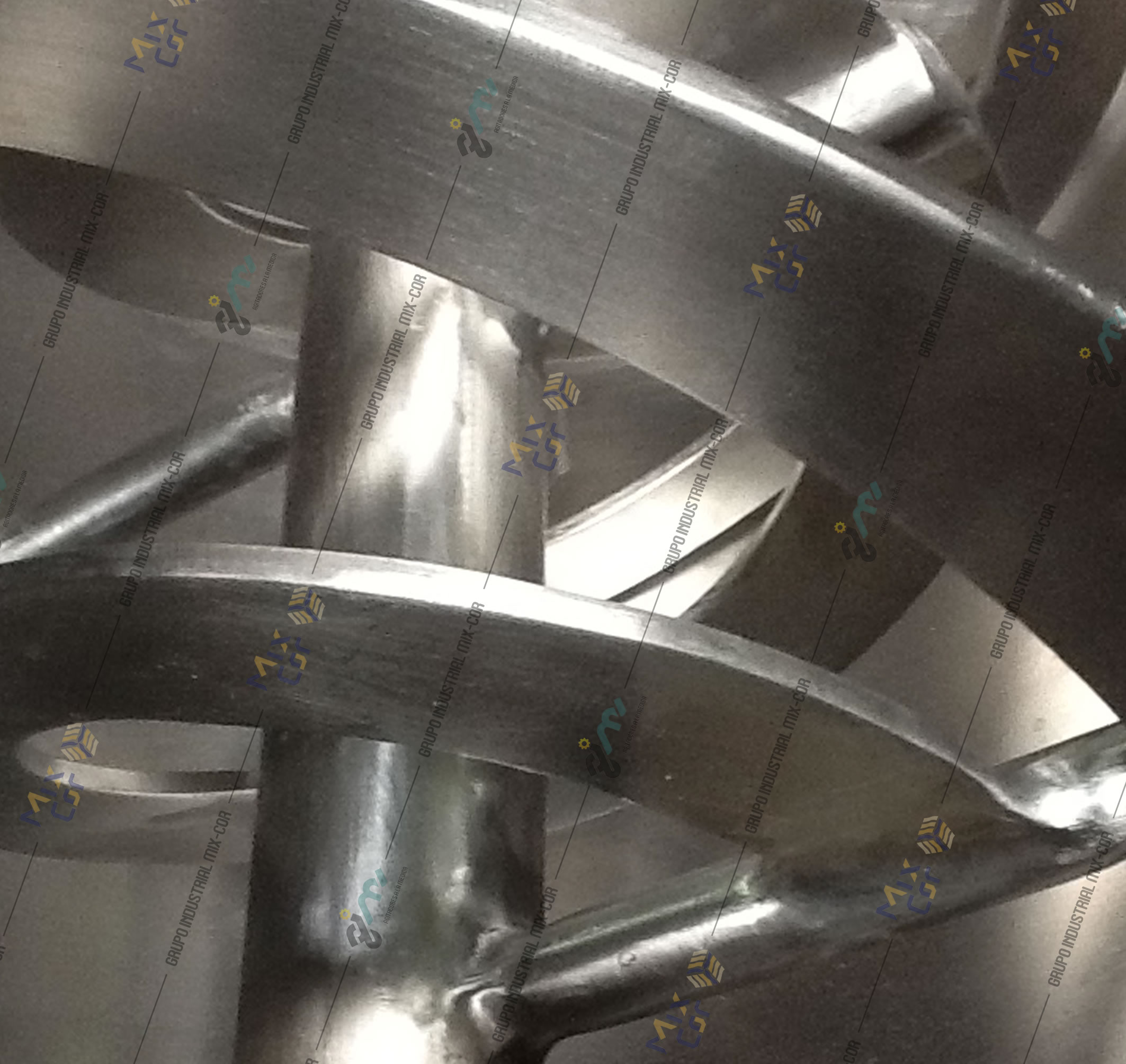 Vertical mounting single helical Ribbon system for mixing high viscosity liquids with low revolutions.